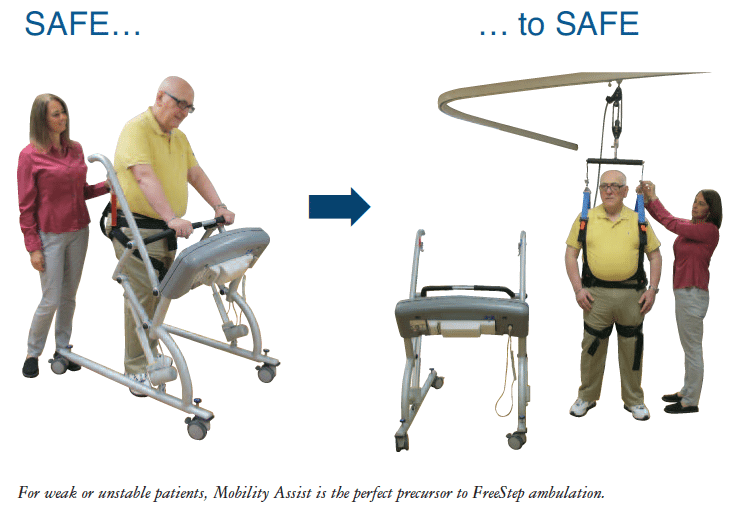 • Safe patient support – Encourages independent movement and addresses disuse atrophy.